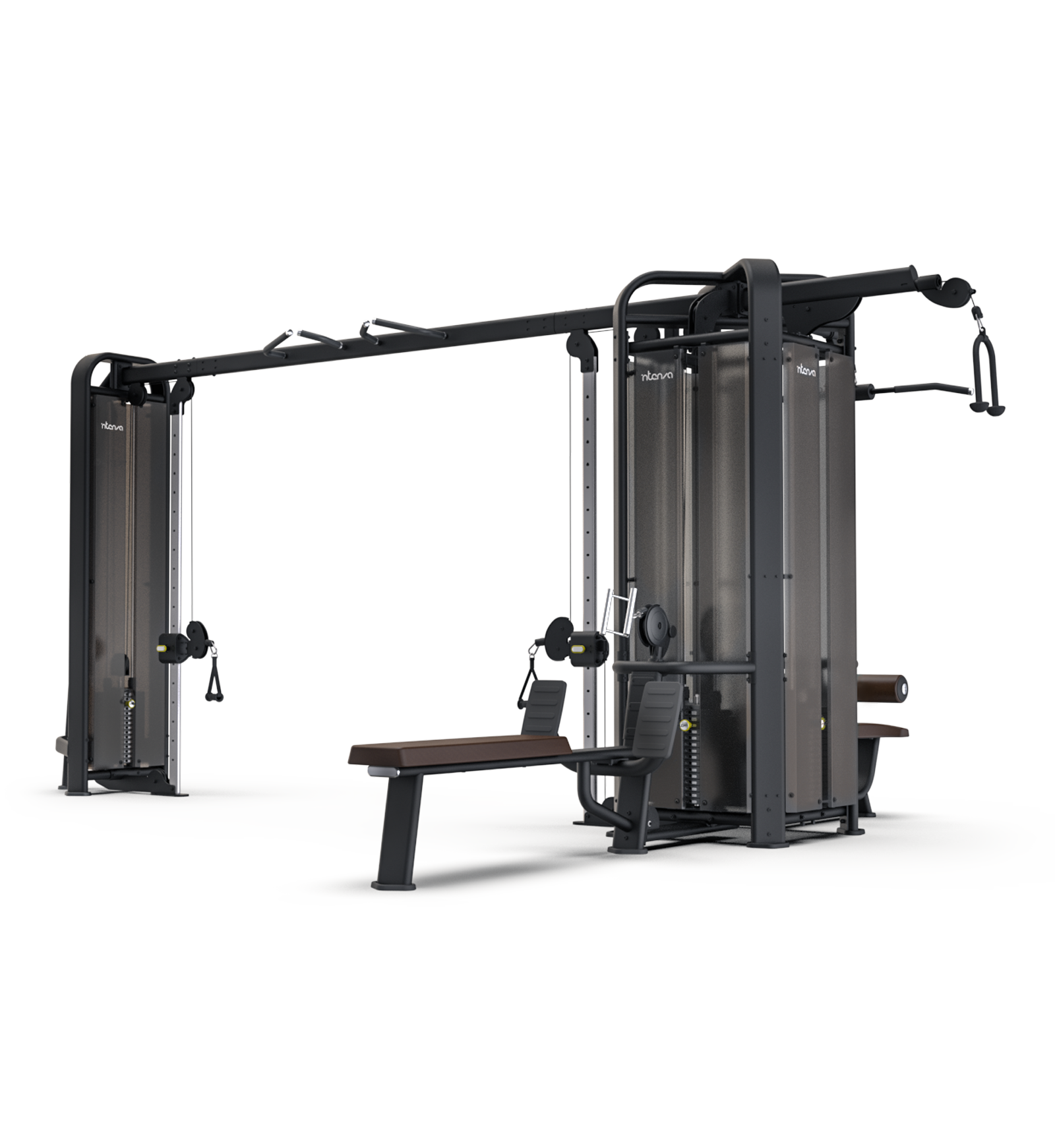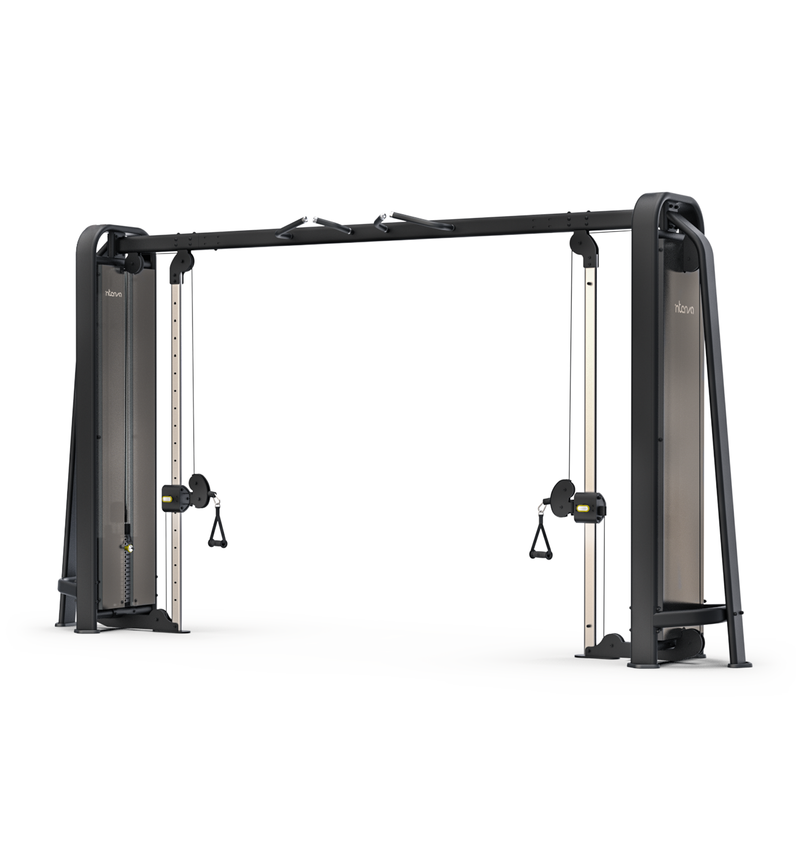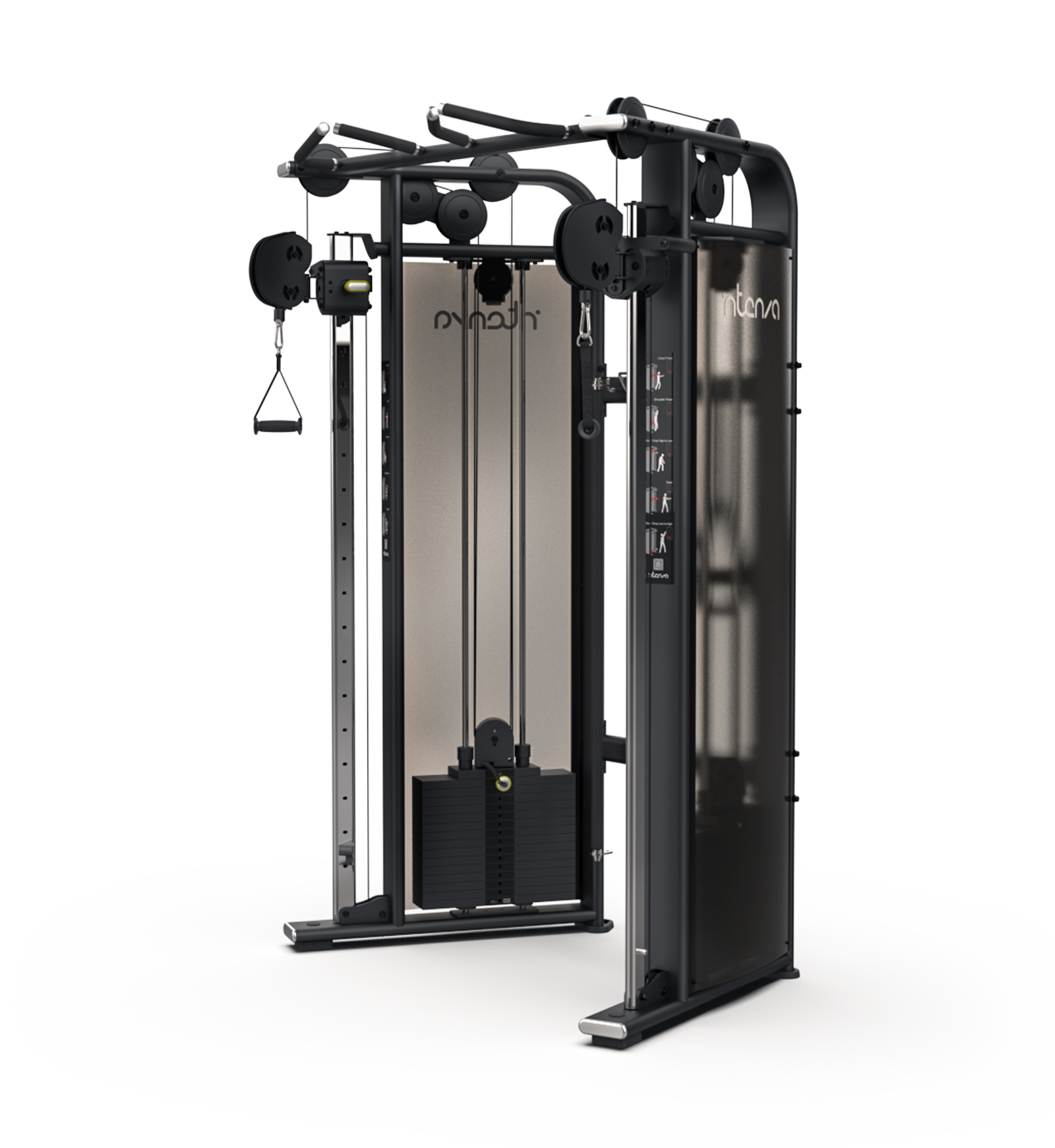 The Dual Adjustable Pulley System on Intenza Cable Machines offers exceptional versatility. With a range of included accessories like straight bars, leg straps, and various handles, users can easily target different muscle groups and perform a wide variety of exercises.