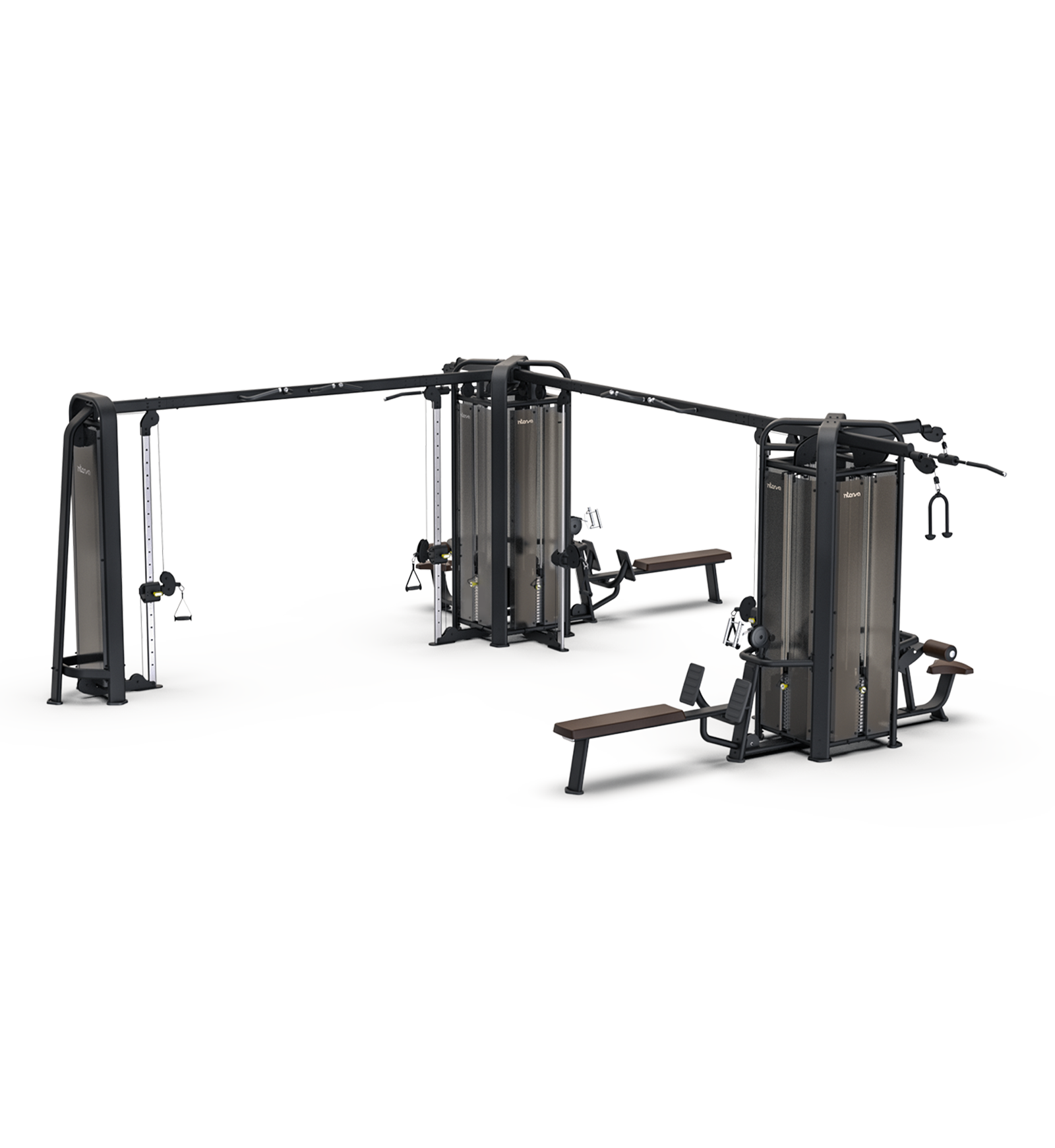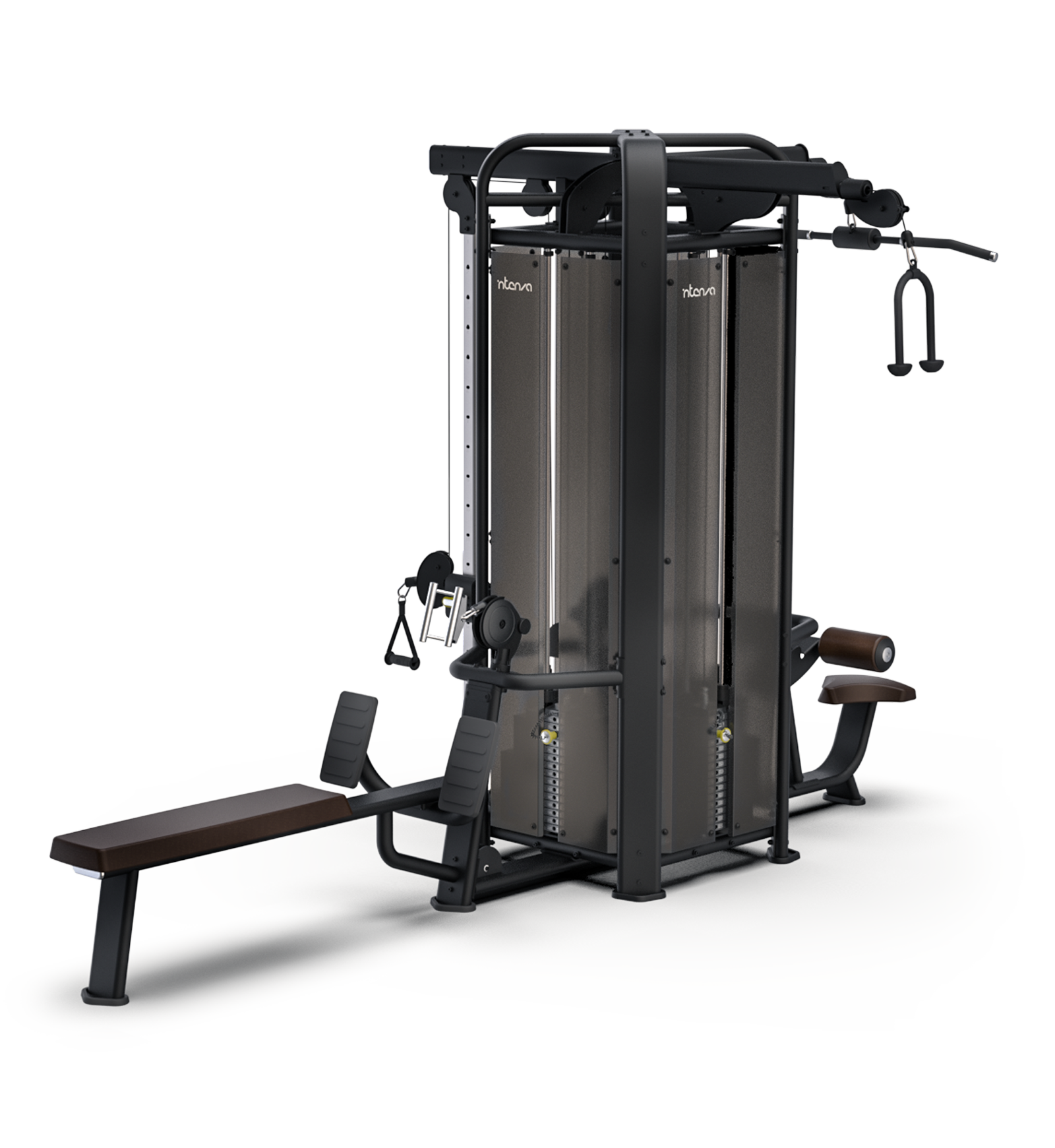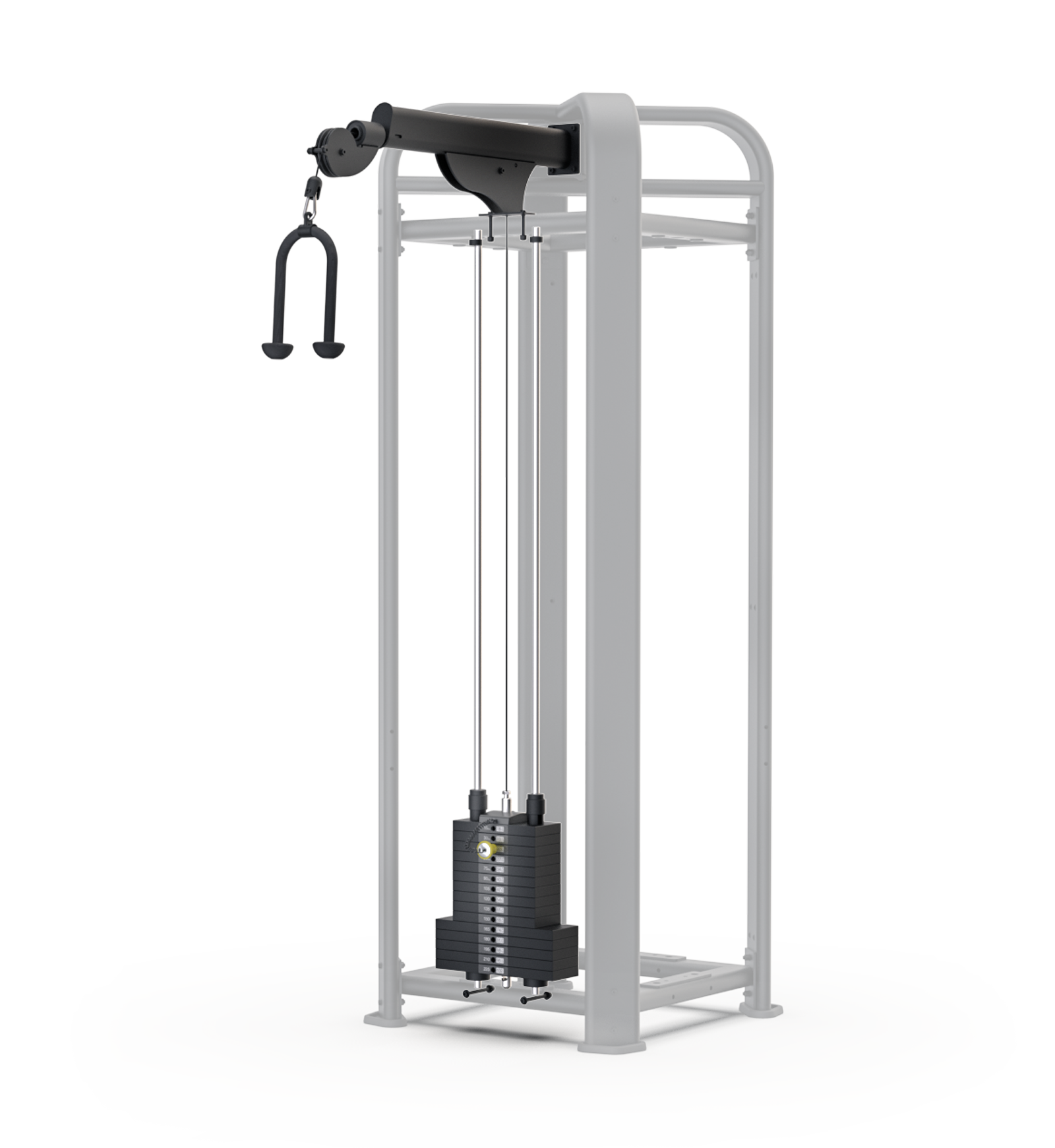 The Dual Adjustable Pulley System on Intenza Cable Machines offers exceptional versatility. With a range of included accessories like straight bars, leg straps, and various handles, users can easily target different muscle groups and perform a wide variety of exercises.